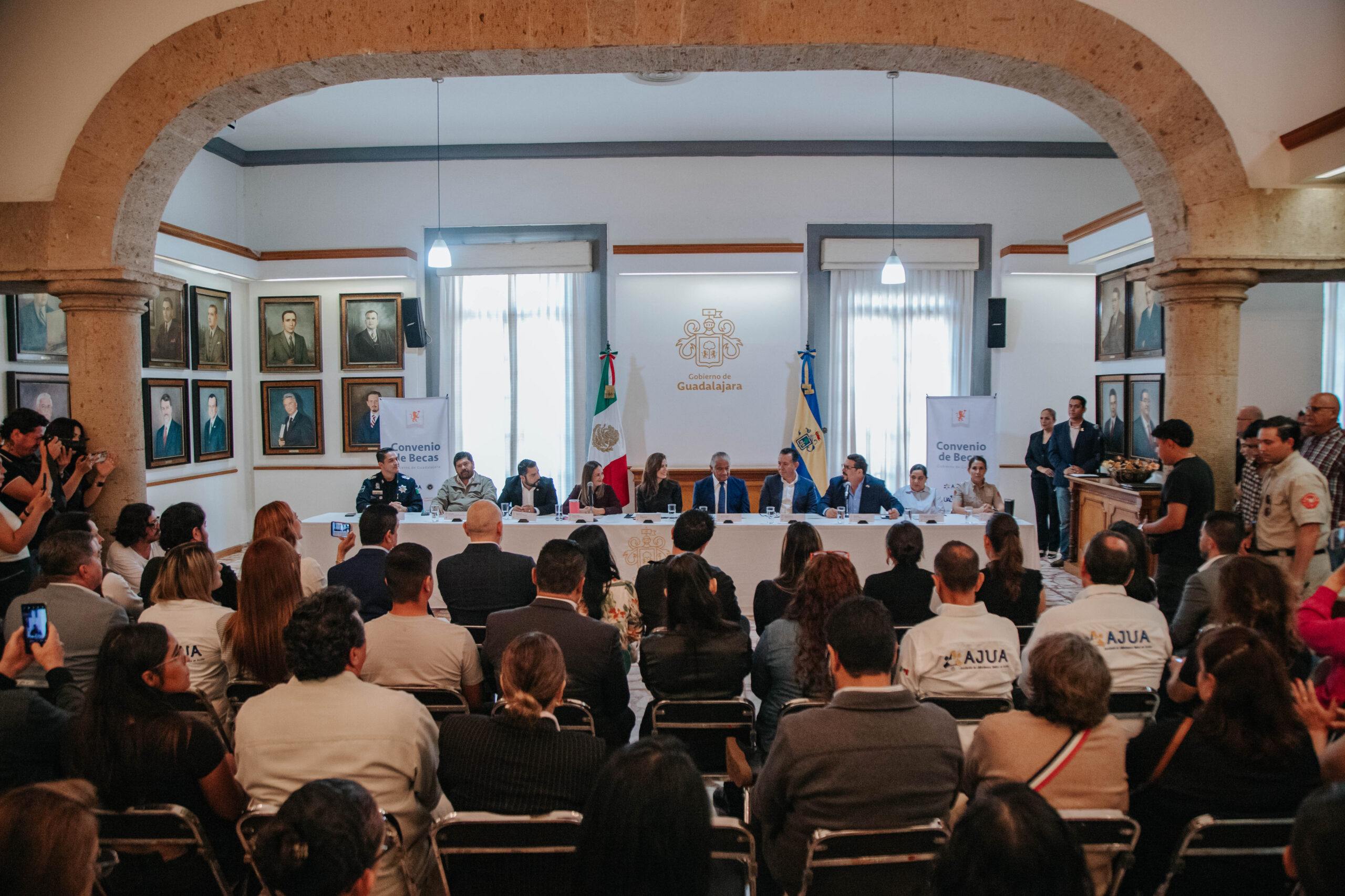 Fue firmado un convenio de colaboración entre el gobierno de Guadalajara, la Asociación Jaliscienses Unidos en Acción y una universidad privada para otorgar 368 becas al 100 por ciento a personal operativo y que puedan estudiar una licenciatura o postgrado, anunció la presidenta municipal, Verónica Delgadillo García.