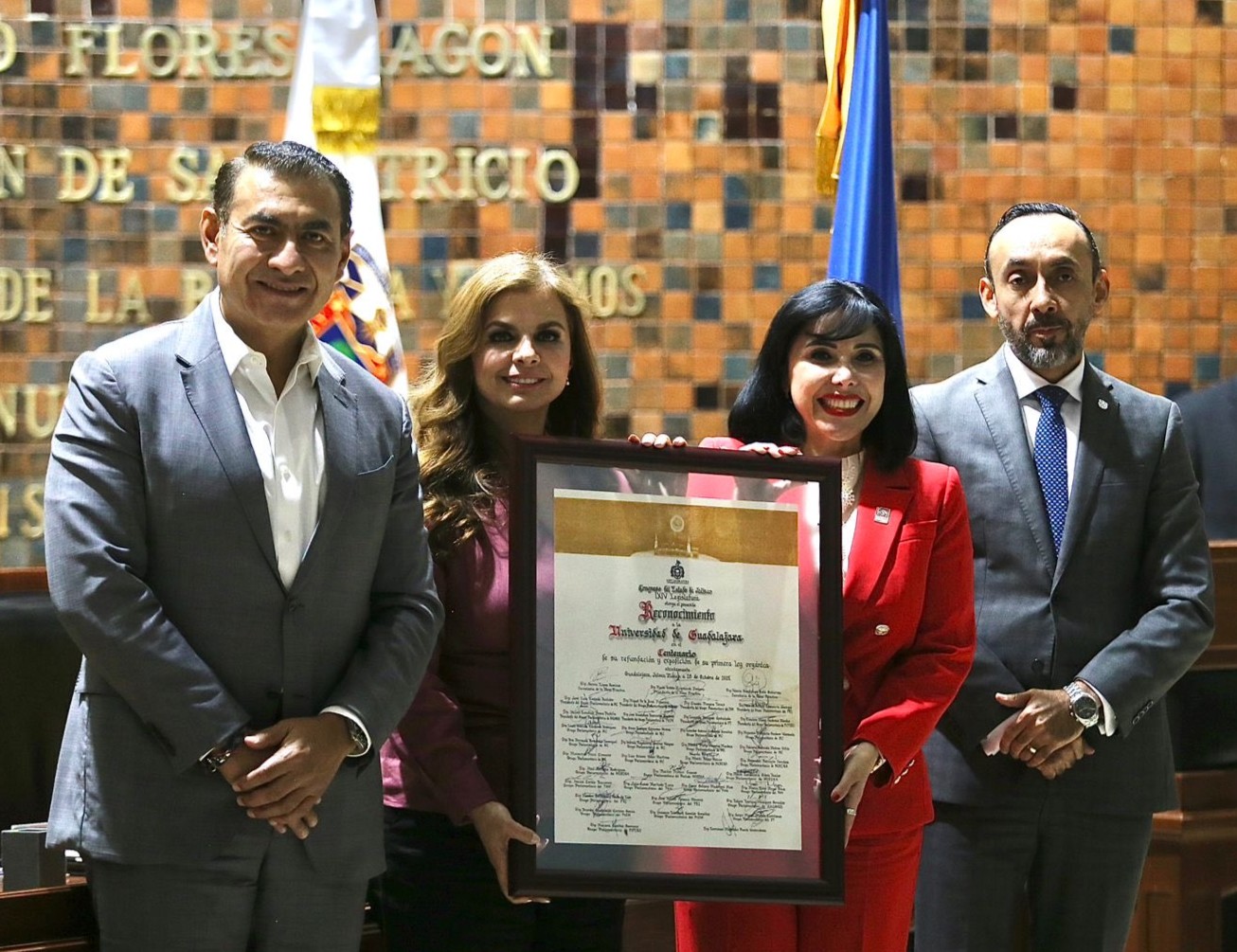Destacando su aportación al desarrollo de Jalisco, el Congreso estatal conmemoró los 100 años de la refundación de la Universidad de Guadalajara. En sesión solemne, se entregó un reconocimiento a la rectora, Karla Planter Pérez, para distinguir la labor formativa de la UdeG. En su mensaje, la rectora subrayó la misión formadora de la Universidad y dijo que la democracia necesita ciudadanos educados, ilustrados para ejercer plenamente sus derechos.