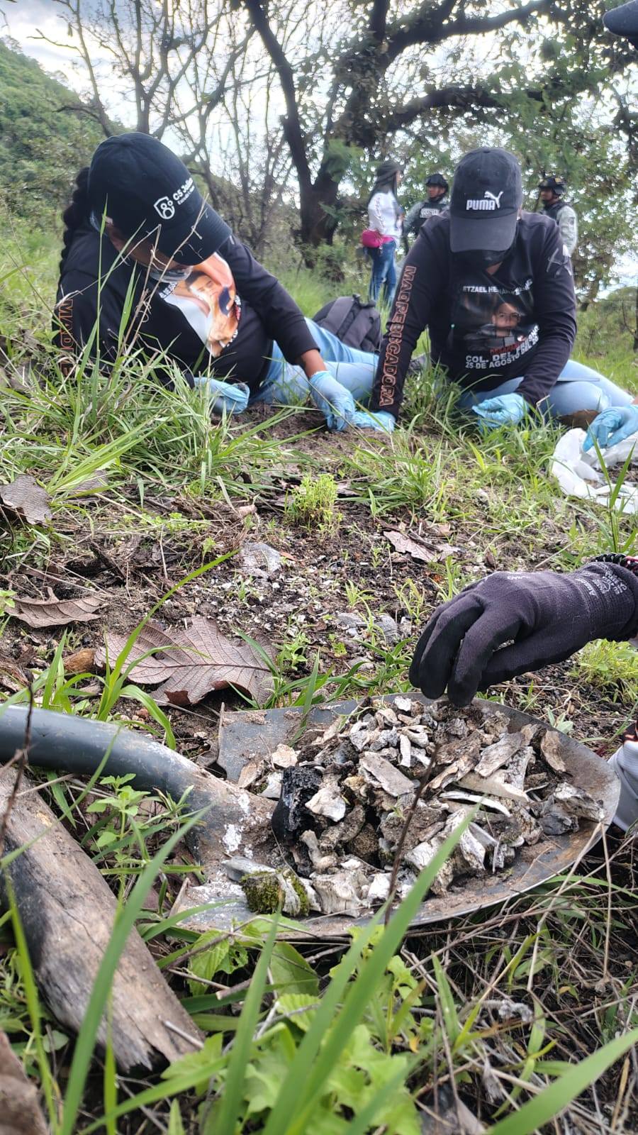 Personal del Instituto Jalisciense de Ciencias Forenses acudió al sitio para recabar indicios, porque resulta imposible recibirlos en bolsas plásticas de supermercado, como lo pidieron integrantes de un colectivo, toda vez que se alteraría la cadena de custodia y preservación del mismo.